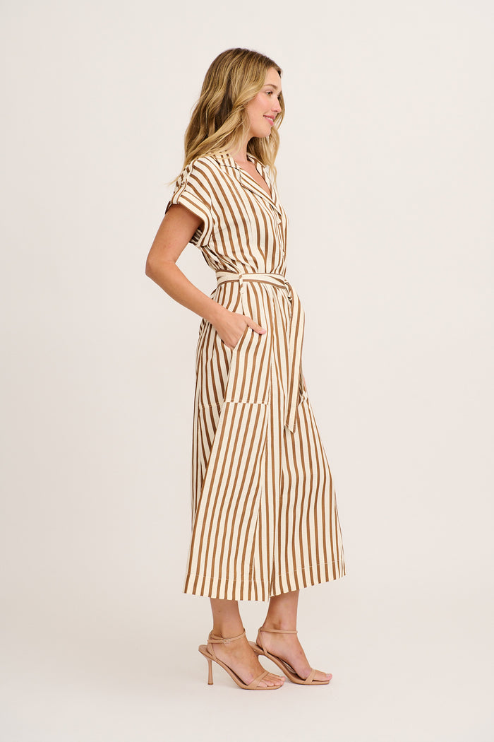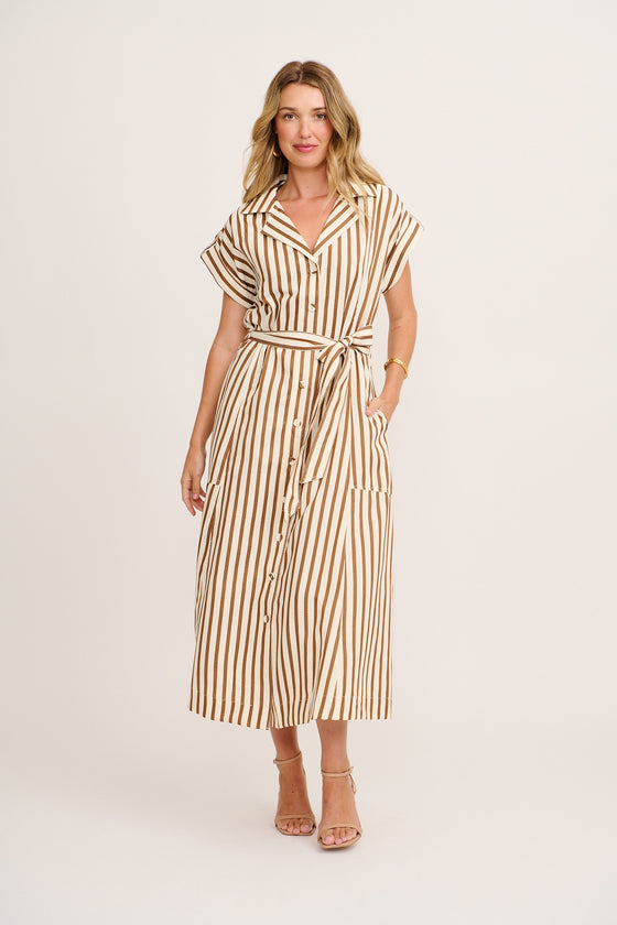 Arcadia Maxi Shirt Dress in Brown Stripe