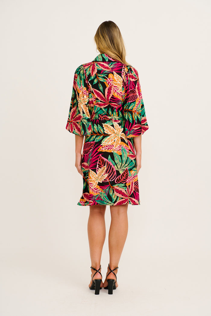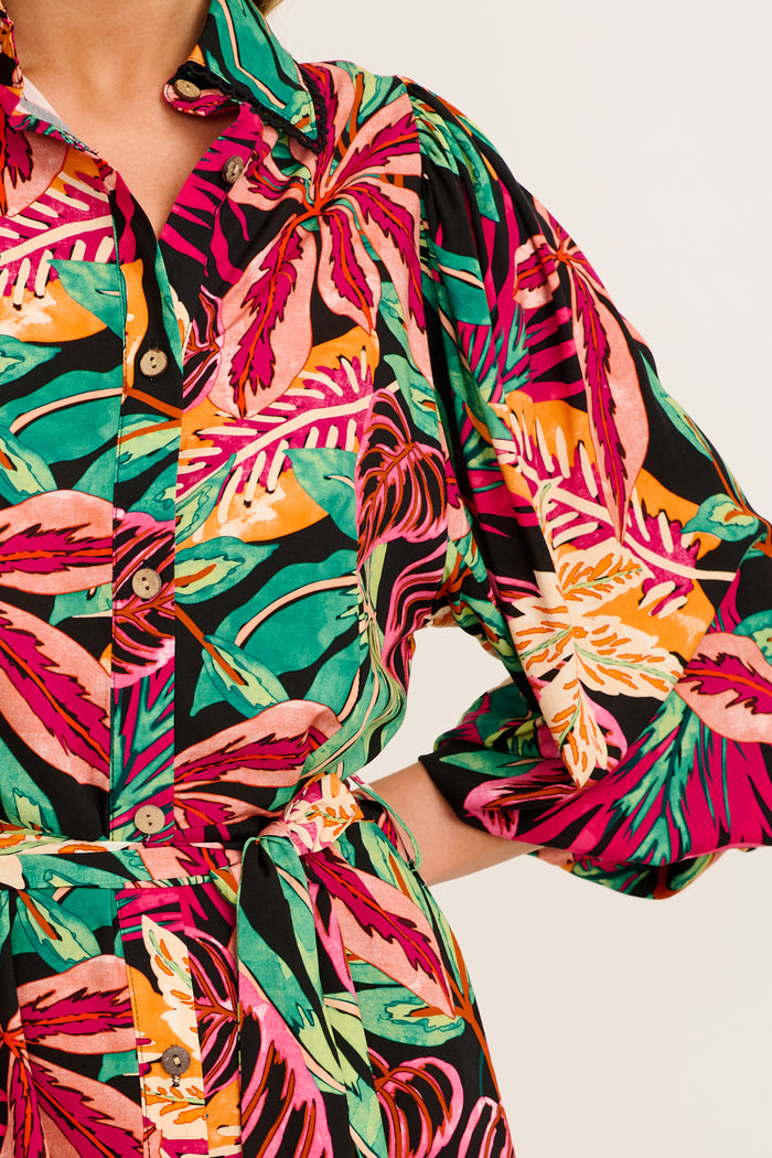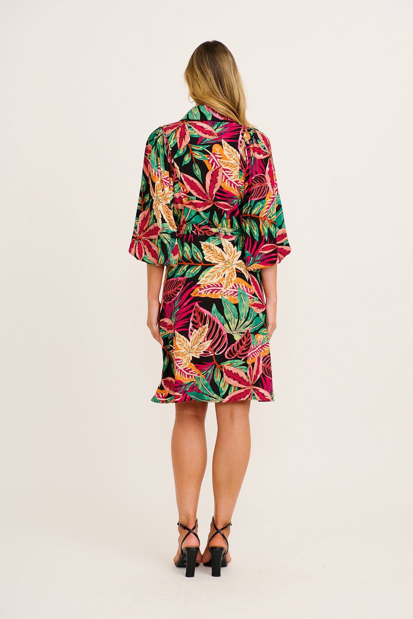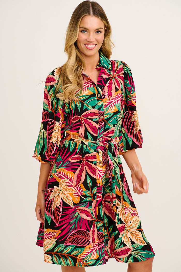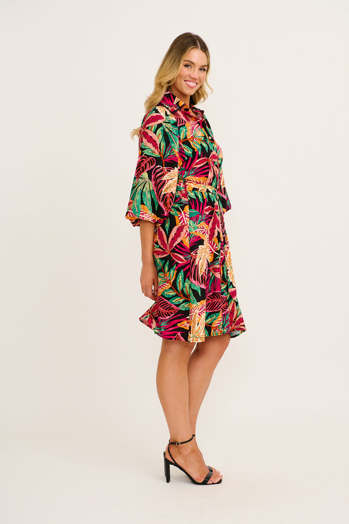 Chic yet casual, the Risa Shirt Dress in Purple Multi Leaf Print delivers bold print with an easy-to-wear silhouette. It’s a versatile piece that works just as well for office days as it does for weekend plans.